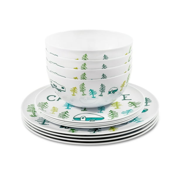 Camco 53315 Rv Melamine Sketch Life Is Better At The Campsite 12 Piece Dish Set Walmart Com