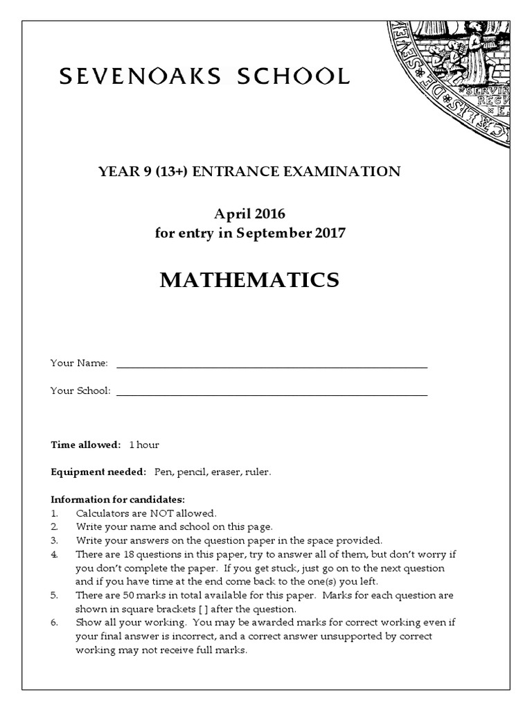 Sevenoaks School Exam Paper Maths Entrance Year 9 Pdf Area Geometry