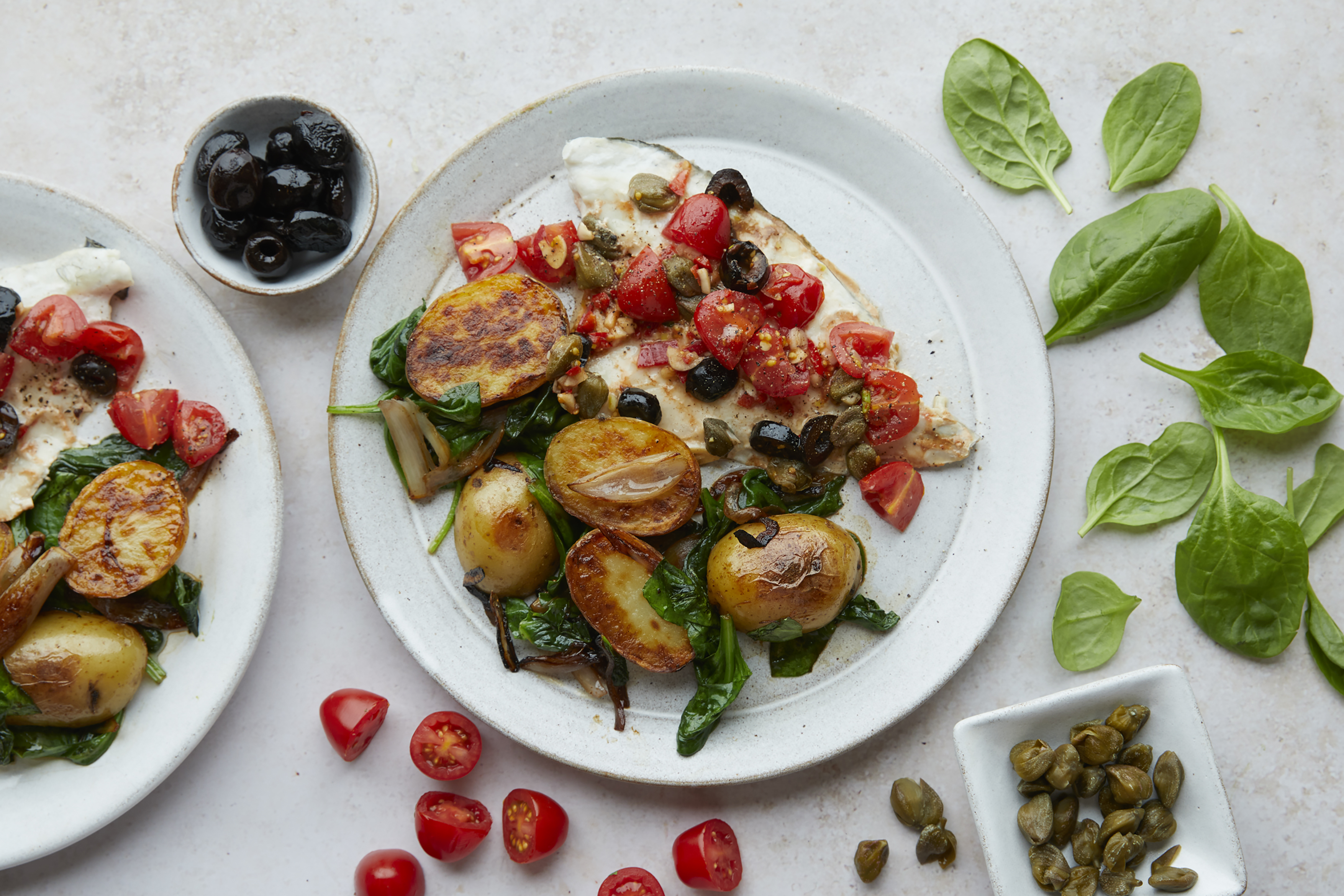 Tomato Olive Baked Whiting With Spinach Potato Recipe Mindful Chef Mindful Chef